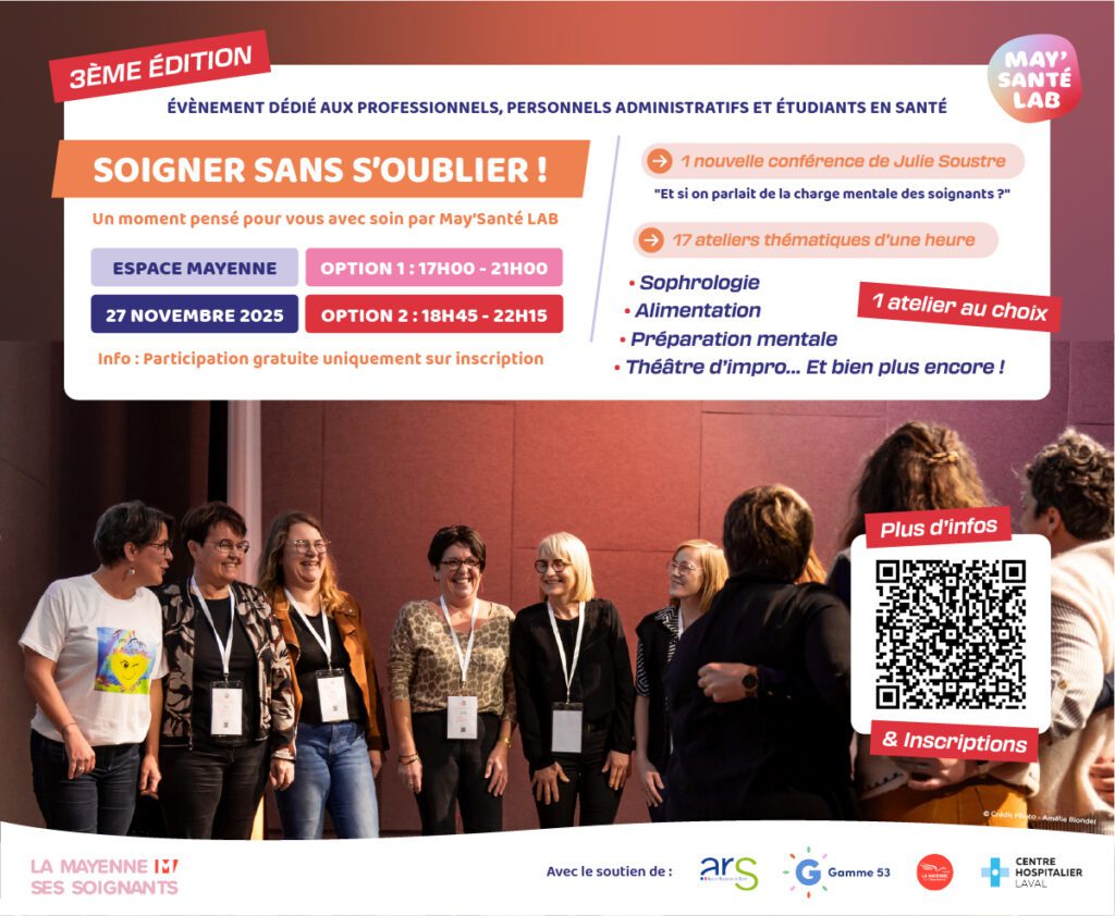 Le 27 novembre 2025, l’association May’Santé LAB organise la 3ème édition de son évènement intitulé cette année « Soigner sans s’oublier » toujours à l’Espace Mayenne.